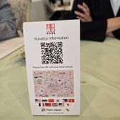 バスの座席に草津温泉女将の会「湯の華会」の「草津こみち」のQRコード発見
