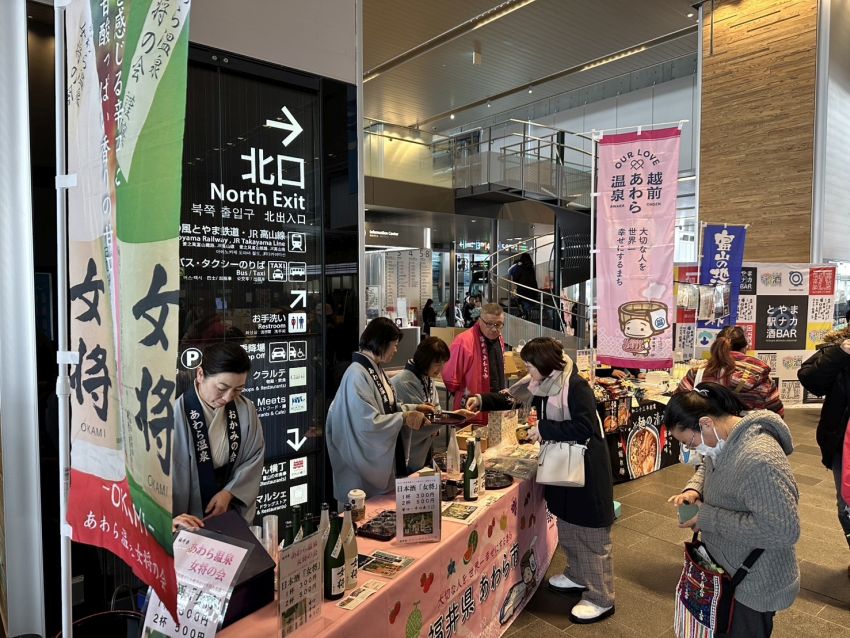 また富山駅構内では、坂井市とあわら市の自慢の逸品の物販も実施。